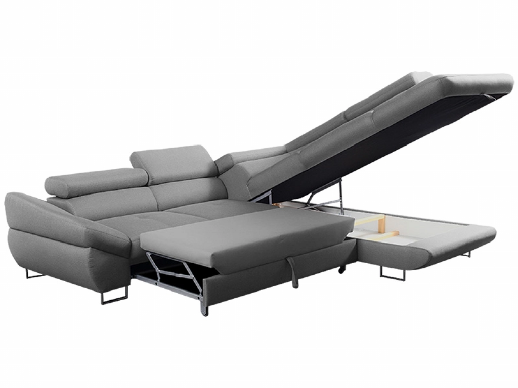 FABIO ist ein Ecksofa mit modernem Design. Es hat ein schlichtes und elegantes Aussehen, das in jedes Wohnzimmer passt. Das Sofa ist aus Kiefernholz gefertigt, was ihm eine robuste Konstruktion und Langlebigkeit verleiht. Es verfügt auch über Metallfüße für ein elegantes Finish.