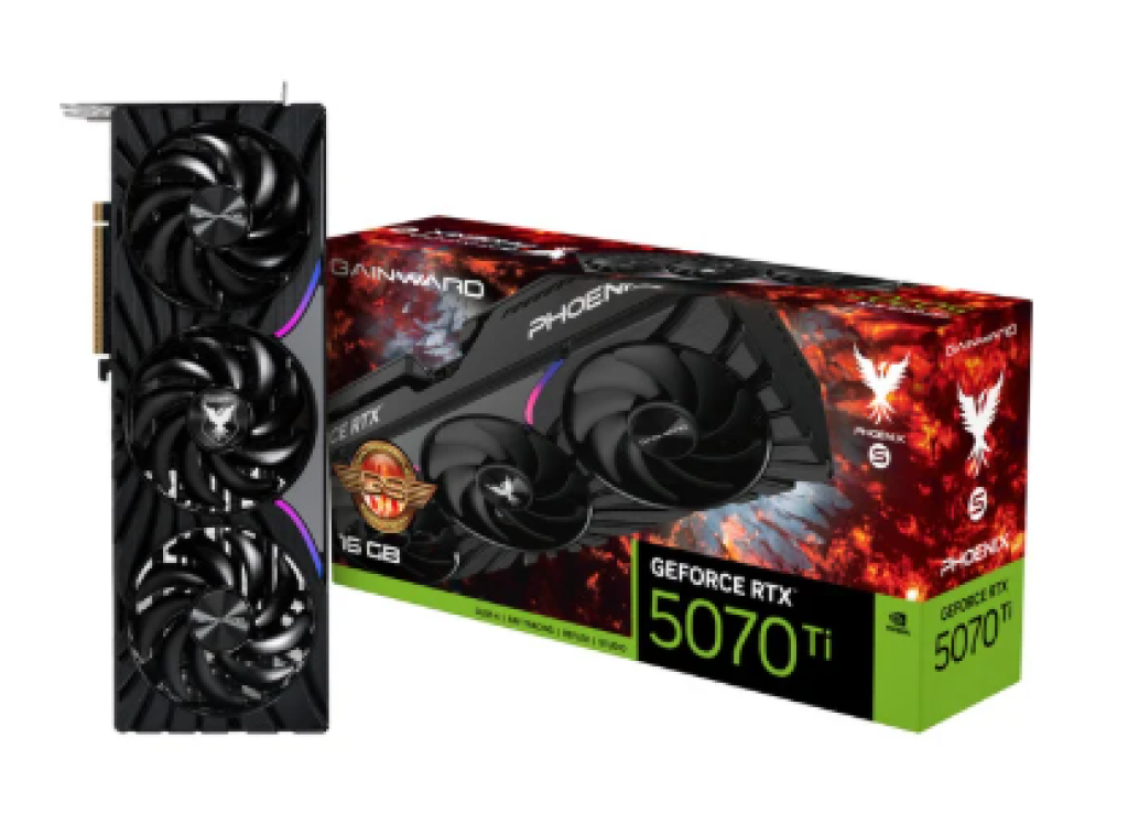 Gainward GeForce RTX 5070 Ti Phoenix-S GS. Grafikprozessorenfamilie: NVIDIA, GPU: GeForce RTX 5070 Ti, Prozessortaktfrequenz: 2295 MHz. Separater Grafik-Adapterspeicher: 16 GB, Grafikkartenspeichertyp: GDDR7, Breite der Speicherschnittstelle: 256 Bit, Speichertaktfrequenz: 14000 MHz. Maximale Auflösung: 7680 x 4320 Pixel. DirectX-Version: 12 Ultimate, OpenGL-Version: 4.6. Schnittstelle: PCI Express 5.0. Kühlung: Aktiv, Anzahl Lüfter: 3 Lüfter, Farben der Beleuchtung: Multi