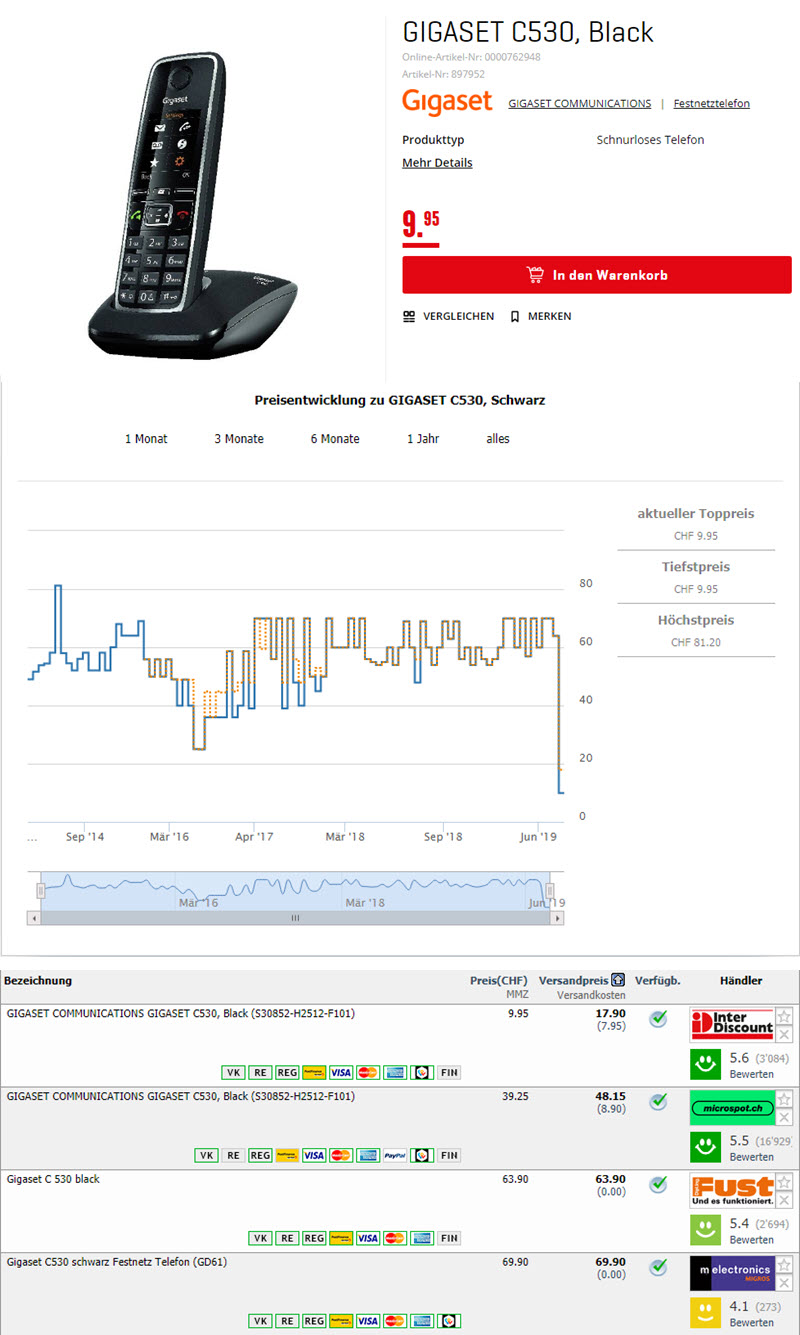 Aktuell gibt es das Siemens Gigaset C530 Funktelefon (schwarz) bei Interdiscount zum Bestpreis von CHF 9.95 wenn man das Gerät in einer Filiale abholt (ansonsten entstehen zusätzliche Portokosten).