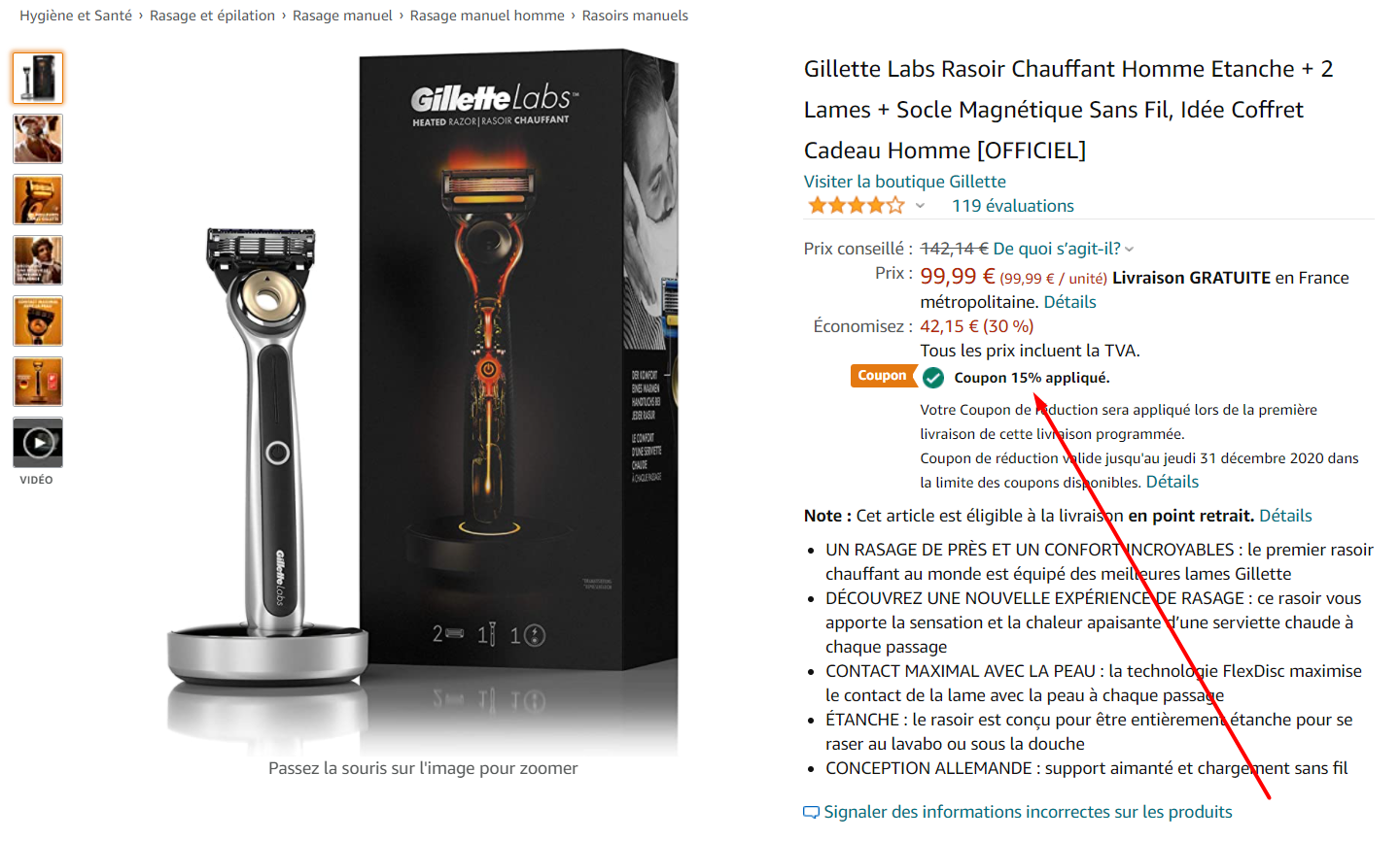 Bei Amazon Frankreich gibts den beheizten Rasierer Gillette Labs Heated Razor mit 2 Ersatzklingen und in Geschenkpackung zum sehr guten Preis von 78 Franken. Derzeit das Set bei Deindeal zum zweitgünstigsten Preis von CHF 104.80 in Aktion, ansonsten wäre der Preis bei mehr asl 135 Franken angesiedelt. Um auf den Dealpreis zu kommen, müsst ihr zunächst den 15%-Coupon aktivieren und am Ende vor der Bezahlung nochmals das 20%-Abo (sofort kündbar) anklicken.