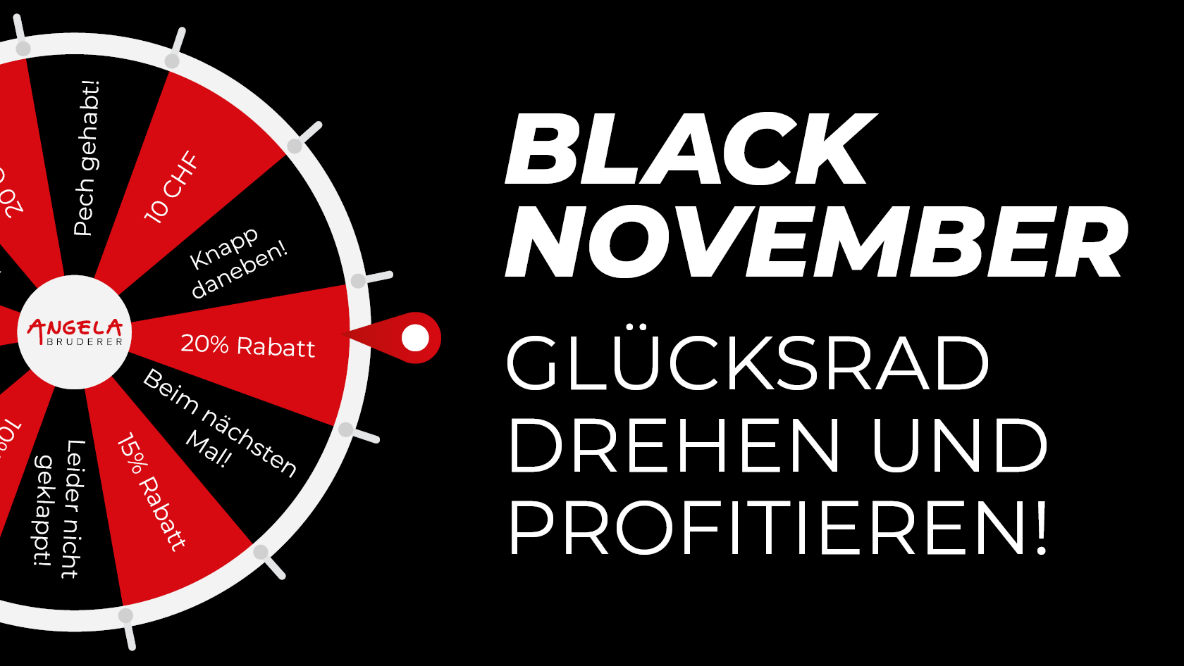 Black November bei Angela Bruderer - Tägliche Chance bei unserem Glücksrad nutzen und tolle Rabatte gewinnen!