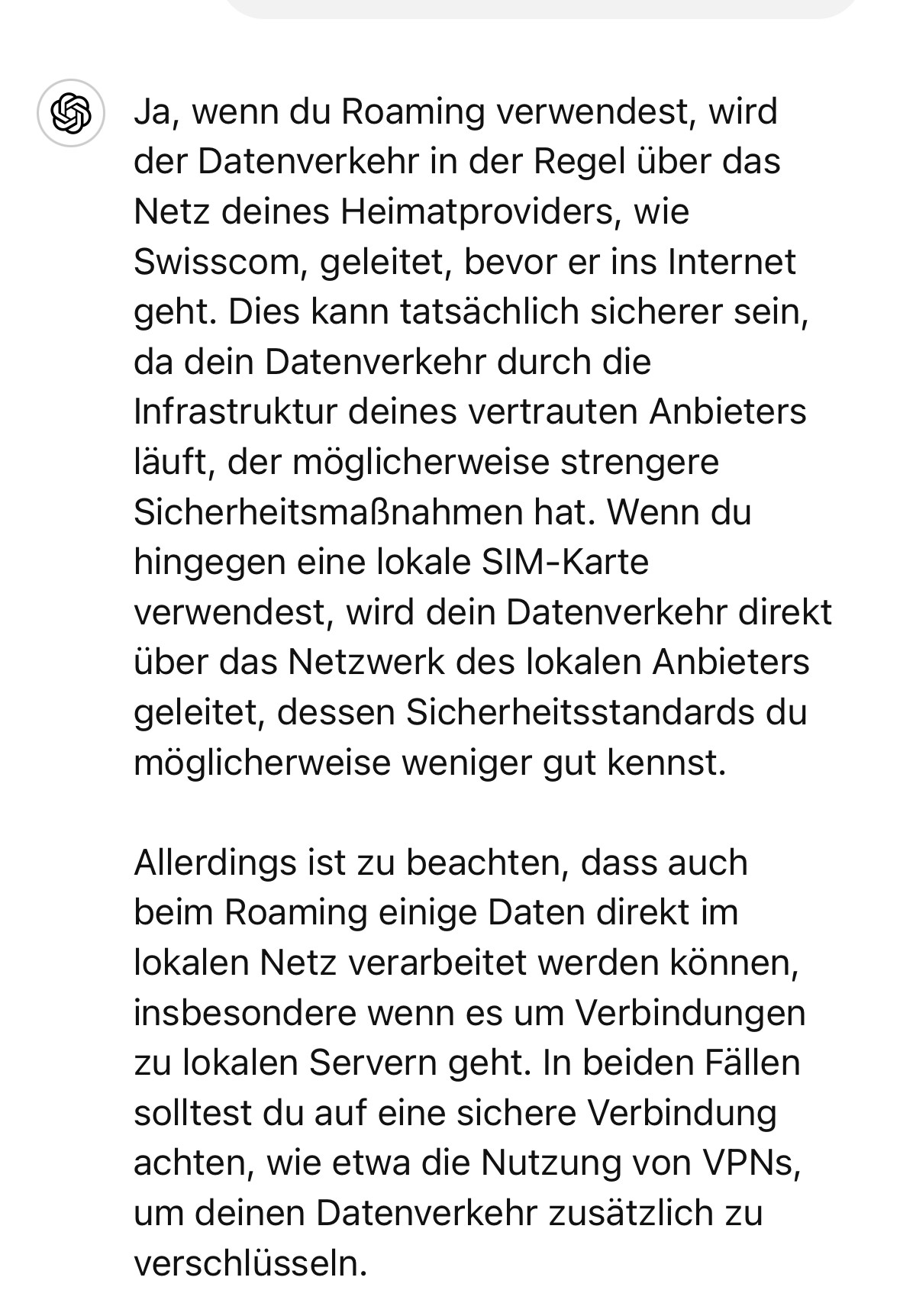 Leider nicht ganz korrekt. Es wird via Schweiz geleitet, sodass du auch dann immer eine Schweizer IP Adresse hast. Musst du mal schauen, wenn du im Ausland mit Roaming surfst. Die eSIM Karten werden meistens über UK oder Dubai geleitet.