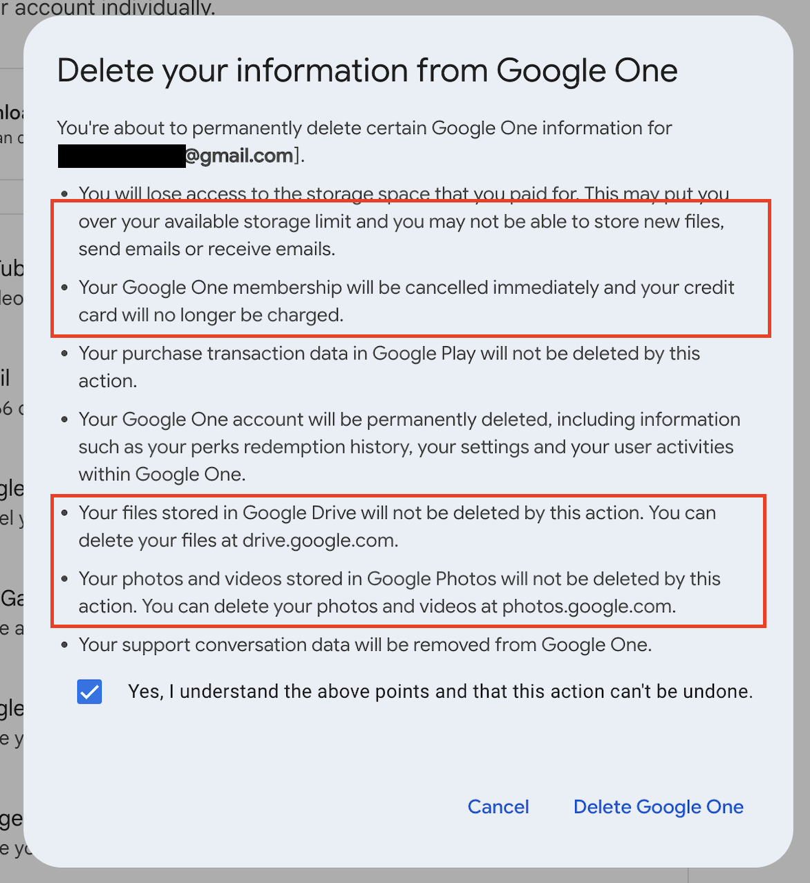 - Ihr bekommt sofort eine Rückerstattung und euer Google one ist beendet.