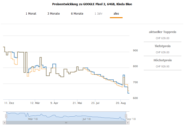 Gemäss toppreise gab es das Handy über alle Farben bislang nie günstiger als für 678.- CHF, der zweitbeste Preis liegt aktuell bei 692.- CHF.