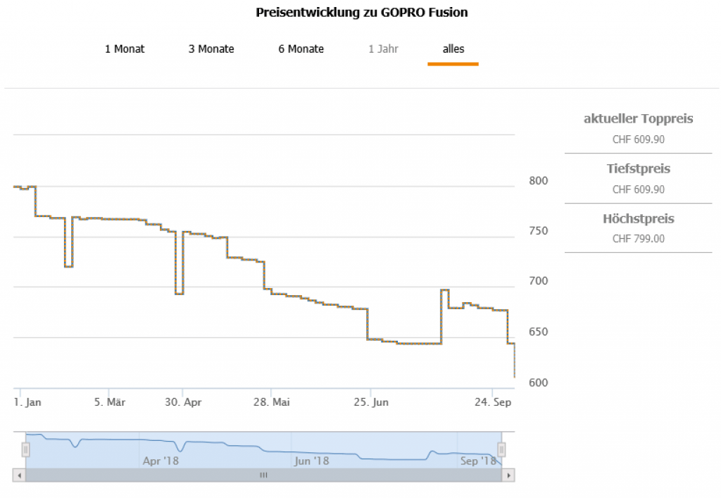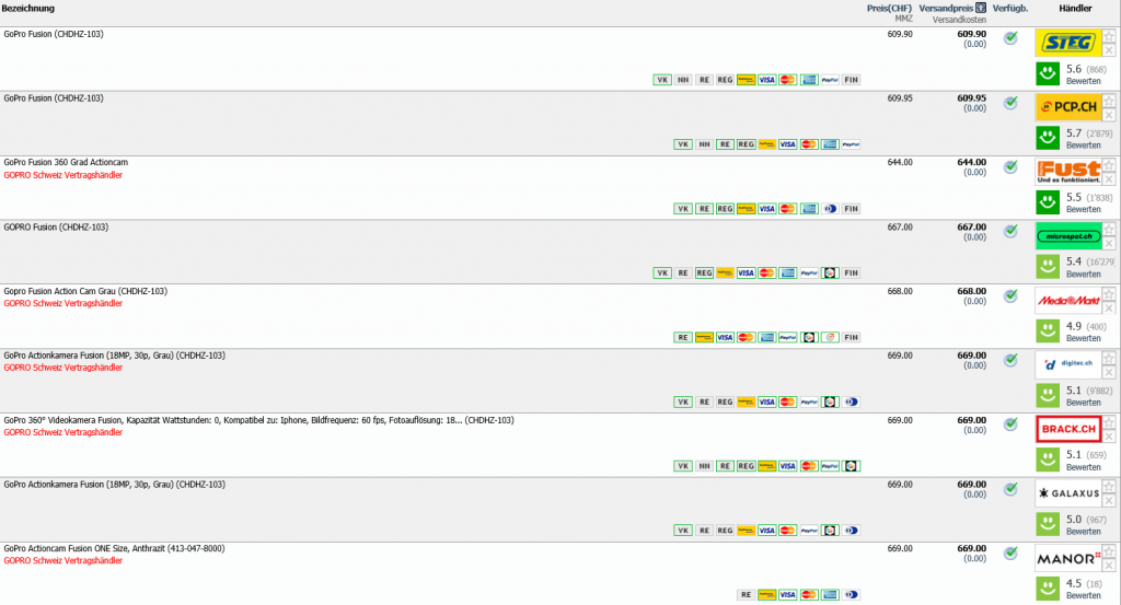 Bei STEG gibt es aktuell die GOPRO Fusion für 609.90 CHF.
