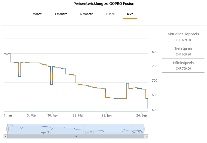 Bei STEG gibt es aktuell die GOPRO Fusion für 609.90 CHF.