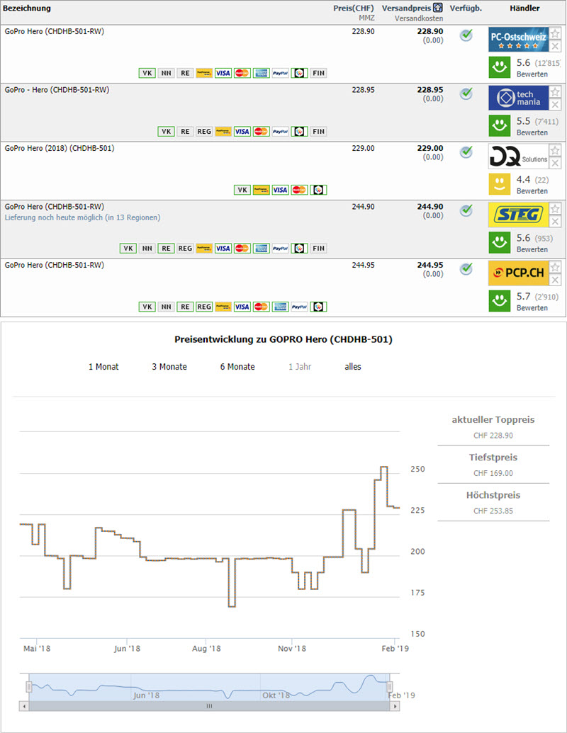 Bei Microspot gibt es aktuell 14 Stück der GoPro Hero (2018) Actioncam zum Preis von jeweils CHF 159.-. Die Artikel sind Ausstellungsmodelle, haben aber eine volle Garantie von 2 Jahren und waren nicht im Dauerbetrieb. Zudem wurde die 100% Funktionalität der Geräte geprüft.