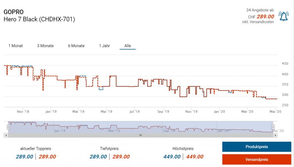 Bei amazon.de kriegt ihr derzeit die GoPro Hero 7 Black zum Aktionspreis von 238 Franken. Laut toppreise sollte dies einen neuen Bestpreis darstellen.