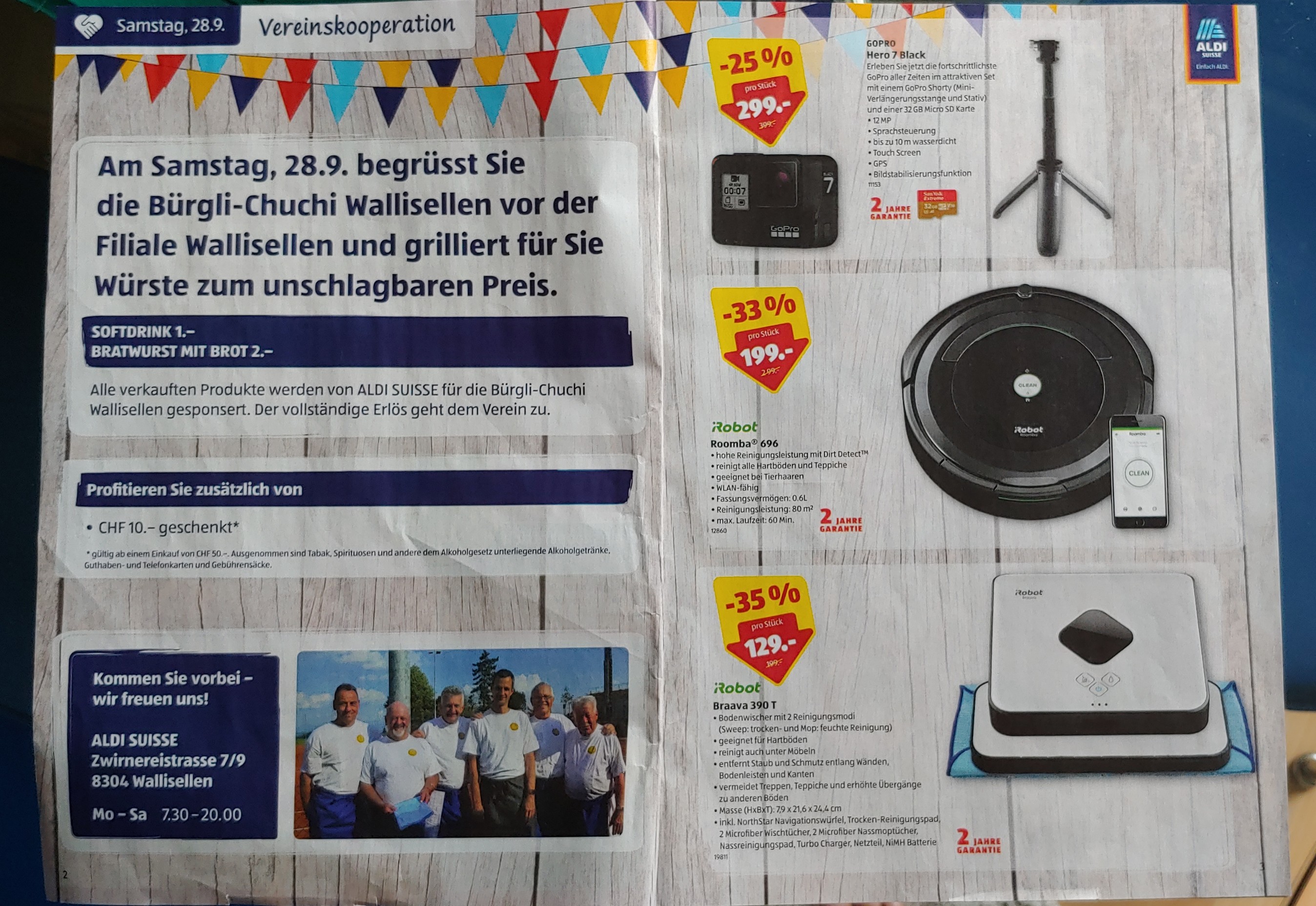 Am 28.09.19 gibt’s bei Aldi in Wallisellen die Actionkamera von GoPro zum neuen Tiefstpreis von CHF 299.- inkl. Shorty und einer microSD-Karte mit 32GB Kapazität. Zweitbester Preis momentan wären CHF 333.-, ohne Zubehör. Das Shorty-Bundle läge sogar bei CHF 409.-