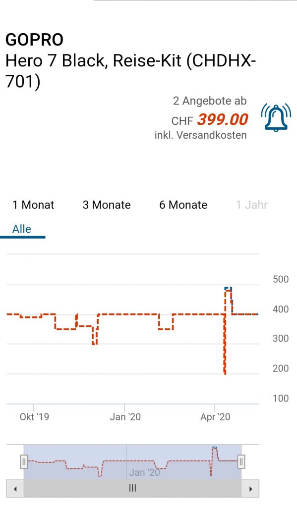 Lasst euch übrigens nicht vom Vergleichspreis blenden, wie man am Graphen sehen kann gabs die Actioncam schon deutlich günstiger.