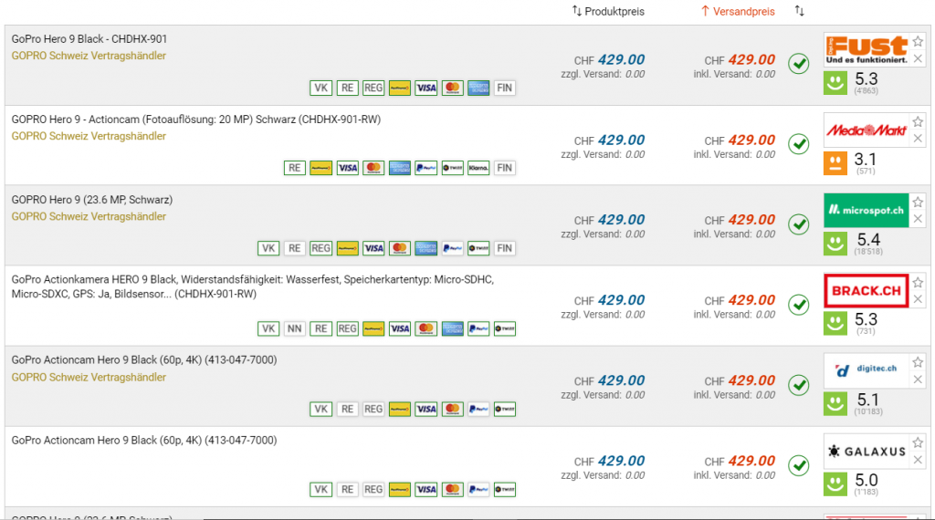 Im GoPro Shop gibts derzeit die Actioncam GoPro Hero 9 black inkl 64GB grosser microSD und einem Zusatzakku, sowie einem einjährigen GoPro-Abo (u.a. unbegrenzter Cloud-Speicher, 2maliger Eintausch pro Jahr, Premium-Support etc.) zum Preis von CHF 379.90. Dieses Angebot ist gewiss nicht so attraktiv wie dasjenige vor ein paar Monaten, stellt im Moment aber dennoch ein besseres Angebot als die Konkurrenz dar.