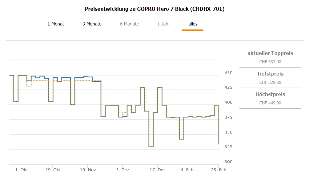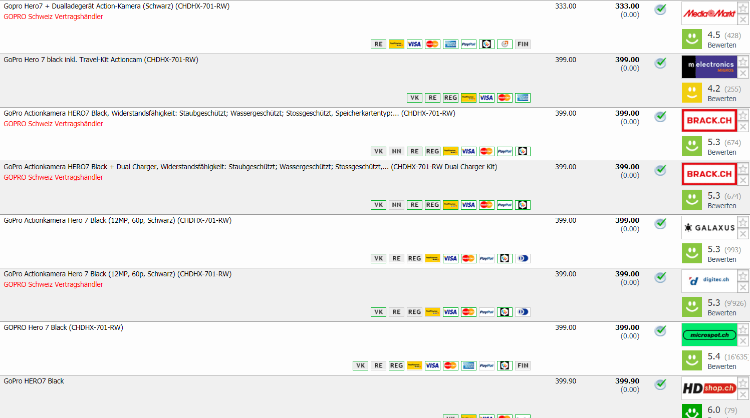 Bei MediaMarkt gibt’s die GOPRO HERO7 Action-Kamera + Dualladegerät für CHF 333.- Zweitbester Preis in der Schweiz beträgt CHF 399.- Bestpreis war schon 4 Franken günstiger mit CHF 329.- kurz vor Weihnachten. Für alle, die das verpasst haben oder jetzt auf den Sommer hin schöne Action-Videos aufnehmen möchten ein guter Deal!