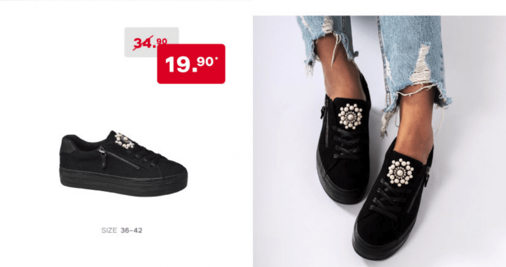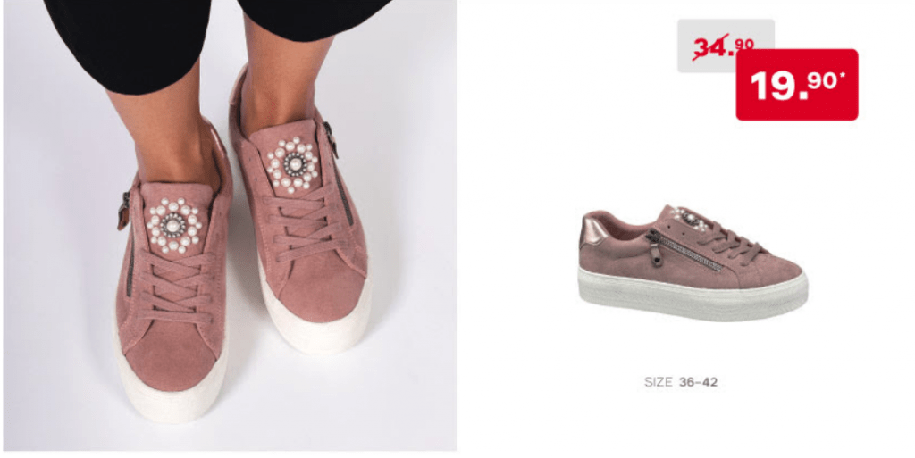 Bei Dosenbach gibt’s wieder einmal eine „Bestpreis“-Aktion: Verschiedene Damen-Sneakers von Graceland werden für CHF 19.90 angeboten. Bei Graceland handelt es sich um eine Dosenbach (bzw. Deichmann) Eigenmarke. Die Qualität der Schuhe ist normalerweise sehr gut, die Designs grösseren Brands und Trends nachempfunden.
