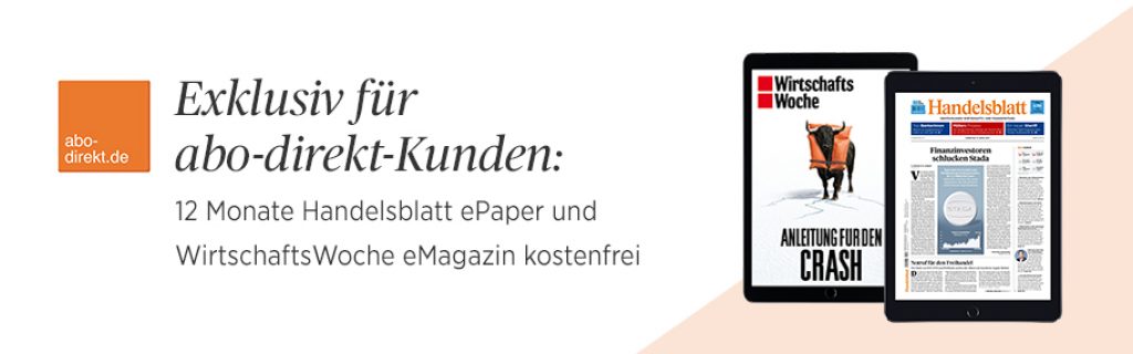 Gratis 1 Jahr lang ePaper Version vom Handelsblatt und der Wirtschaftswoche