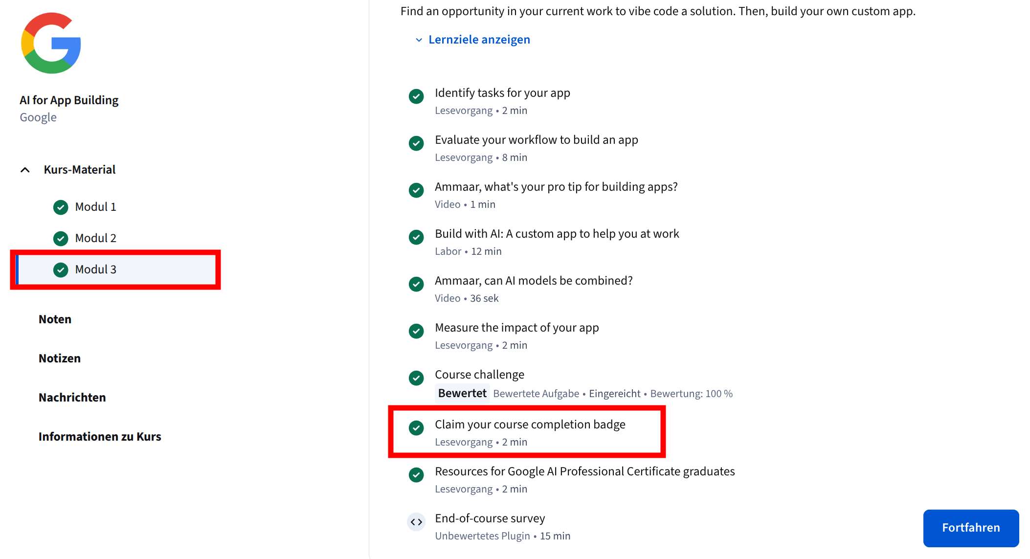 3. Geht im Kurs zum Modul „Redeem your Google AI Pro trial“. Dort findet ihr den Link zu eurem persönlichen Code.