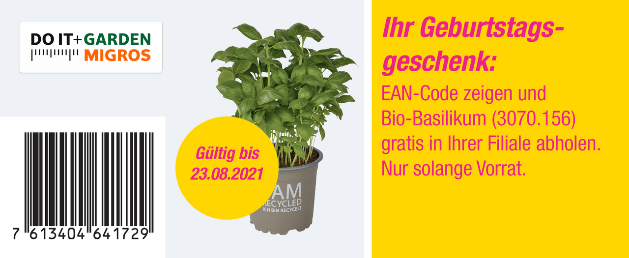 Auf der DO IT+GARDEN Startseite hab ich was cooles gefunden, Do It hat Geburtstag und schenkt uns Bio-Basilikum 😛 einfach den Code in der Filiale zeigen und einen gratis Bio-Basilikum Topf mitnehmen 🙂