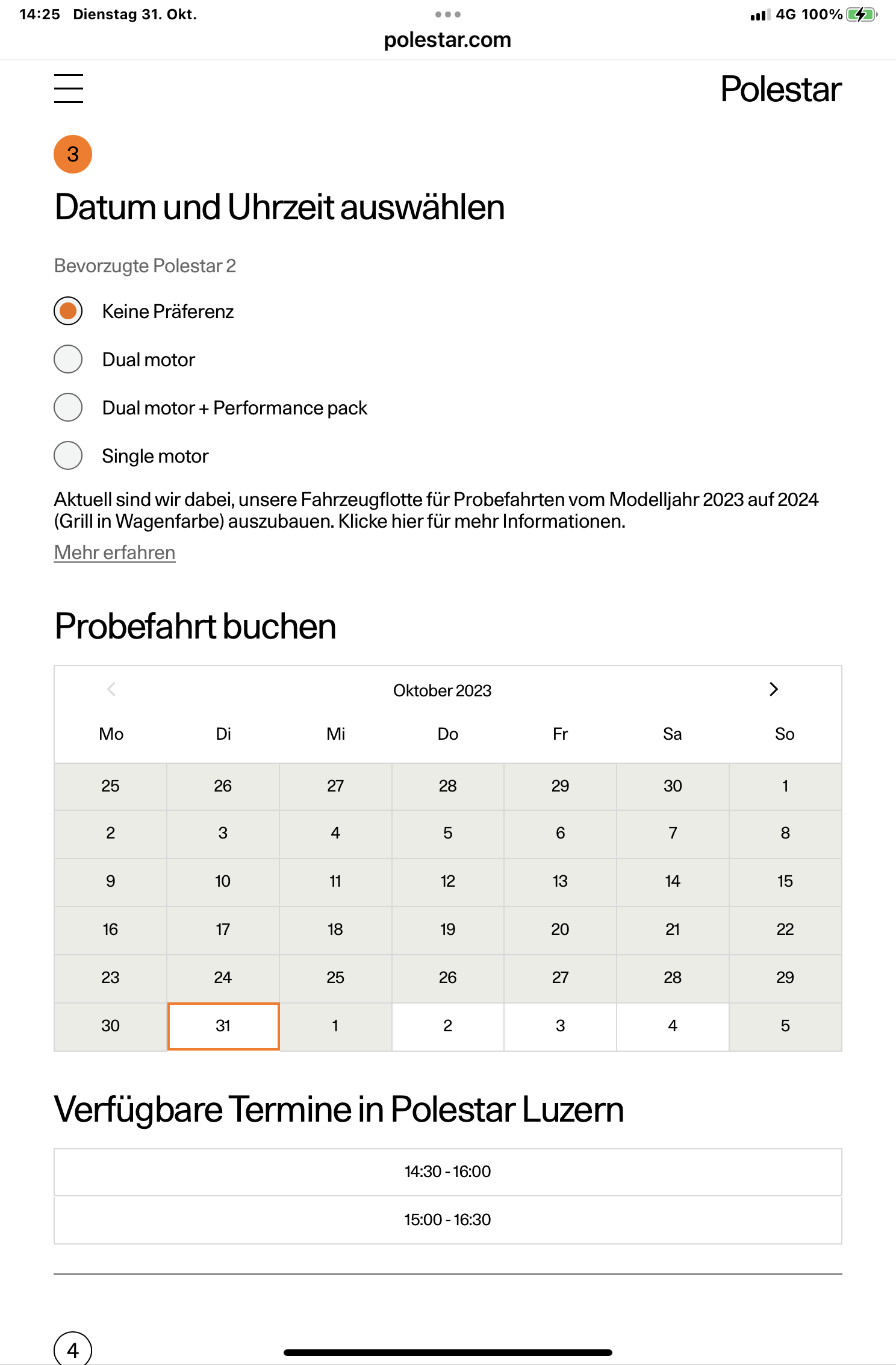 Also bei Polestar kann man bis zu drei Tagen einen Probefahren.