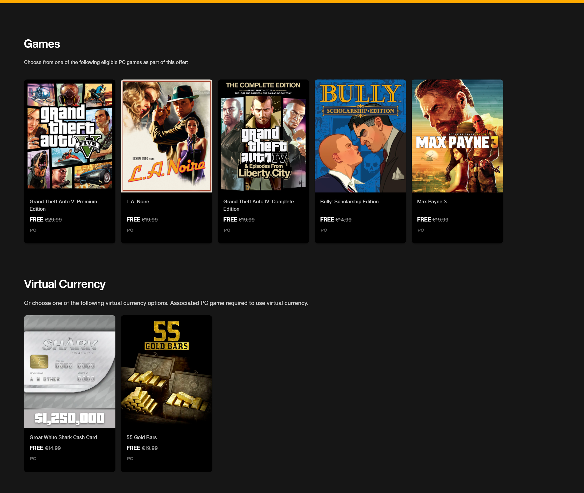 Bei mir genau so. Man muss erst mal die GTA Trillogy kaufen und dann kriegt man die anderen for free.... also no Deal.