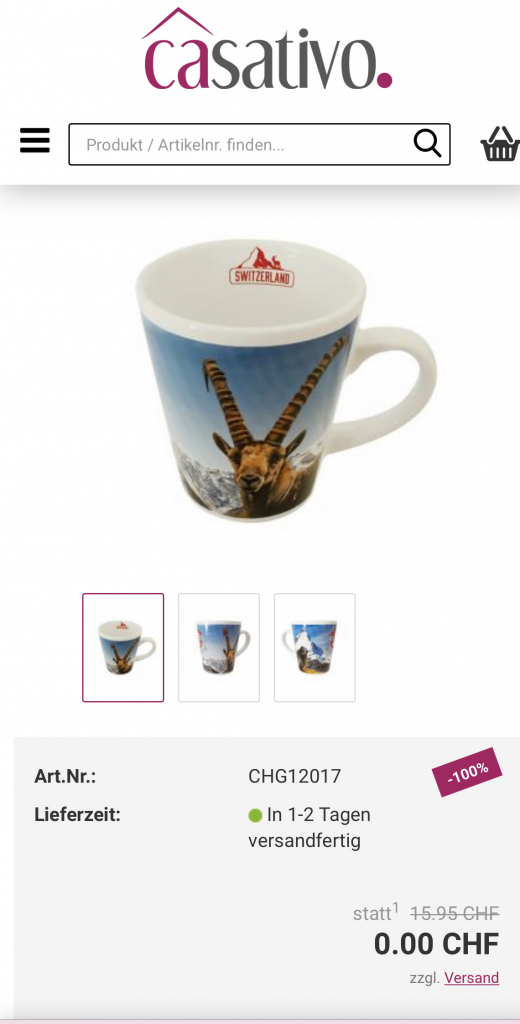 Gratis Kaffee- und Teebecher! Sie bezahlen nur die Versankosten von 8.95 Fr.