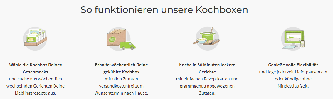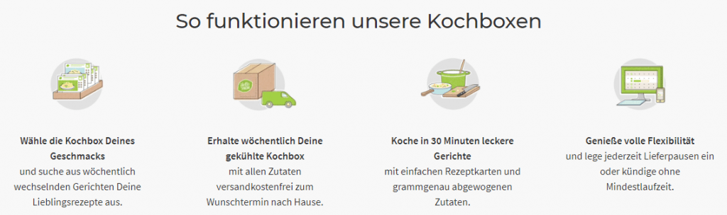 WICHTIG: Mit der Bestellung schliesst man ein Abo ab. Dieses kann man aber einfach kündigen (Ich habe nach meiner Gratis Kochbox die Folgewochen pausiert und werde nach erhalt der Gratis Box das Abo kündigen).
