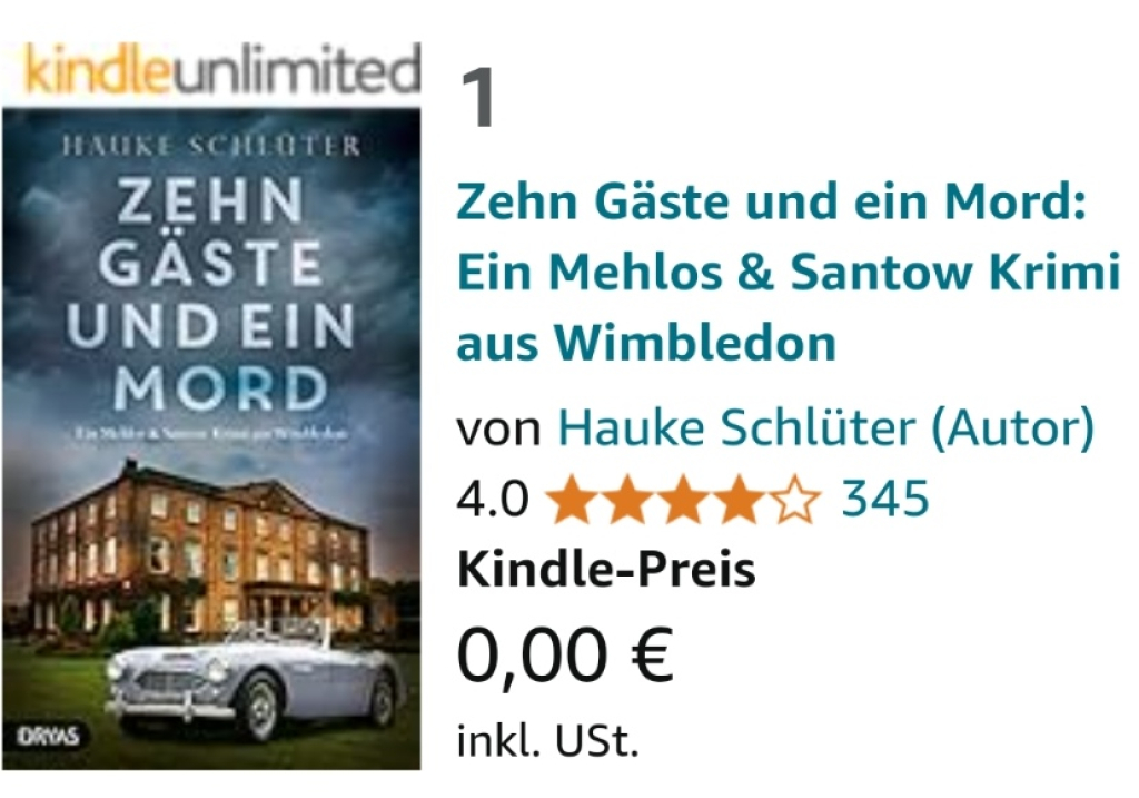 Zehn Gäste und ein Mord von Hauke Schlüter. Gratis ebook für Kindl, einer von drei Episoden.