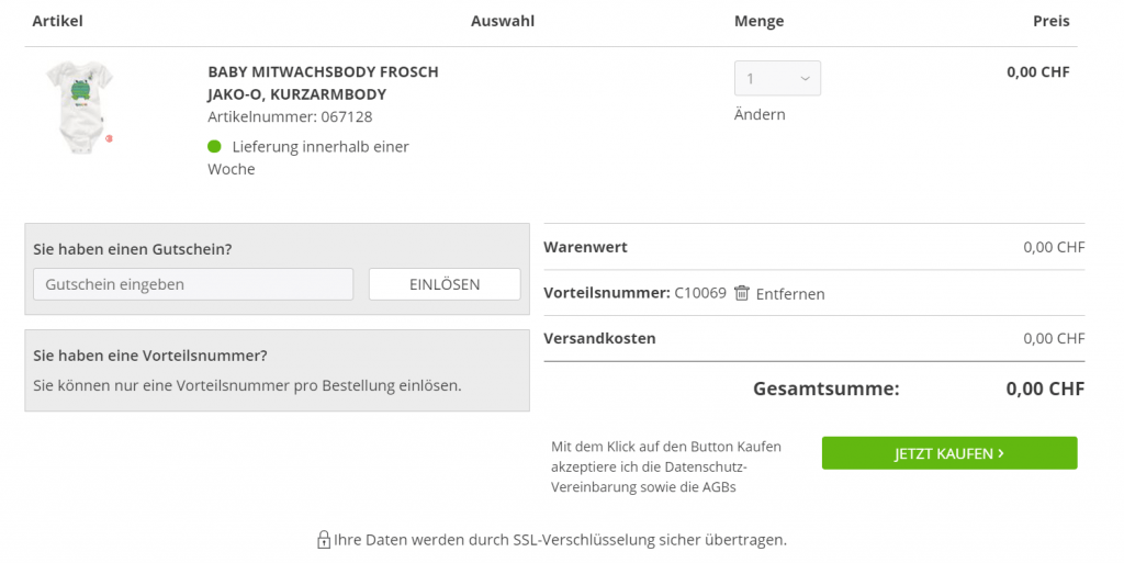 Bei Jako-o können sich werdende Eltern einen gratis Mitwachsbody bestellen. Gültig ist die Aktion für Neukunden oder solche Kunden, die seit zwei Jahren nicht mehr bestellt haben. Neben dem Body wird einem auch ein Katalog mitgeschickt.