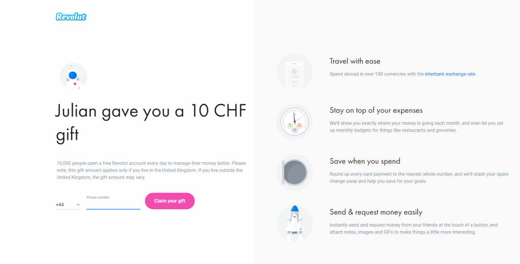 Bitte beachte: Ein Freund kann seine erste Karte nur dann kostenlos erhalten, wenn er sich nicht vorher bei Revolut angemeldet hat. Zu Verifizierungszwecken bitten wir unsere Kunden, ihr Konto mit 10 £ (oder einem entsprechenden Betrag) aufzuladen, bevor sie die kostenlose Karte bestellen. Dies ist keine Gebühr für die Karte und kann sofort über die Revolut-Karte ausgegeben oder auf dein ursprüngliches Bankkonto zurücküberwiesen werden.