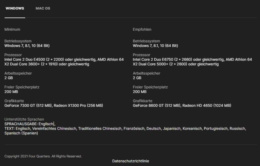 Anforderungen PC: