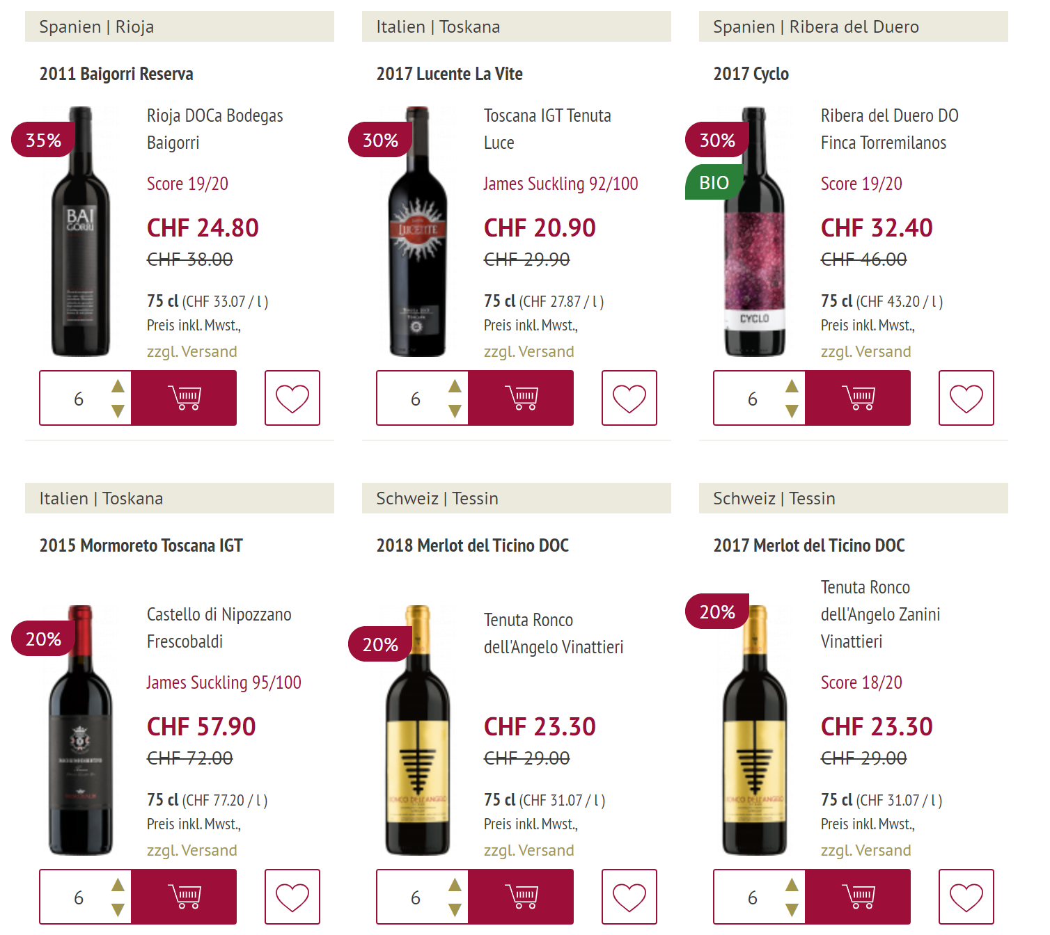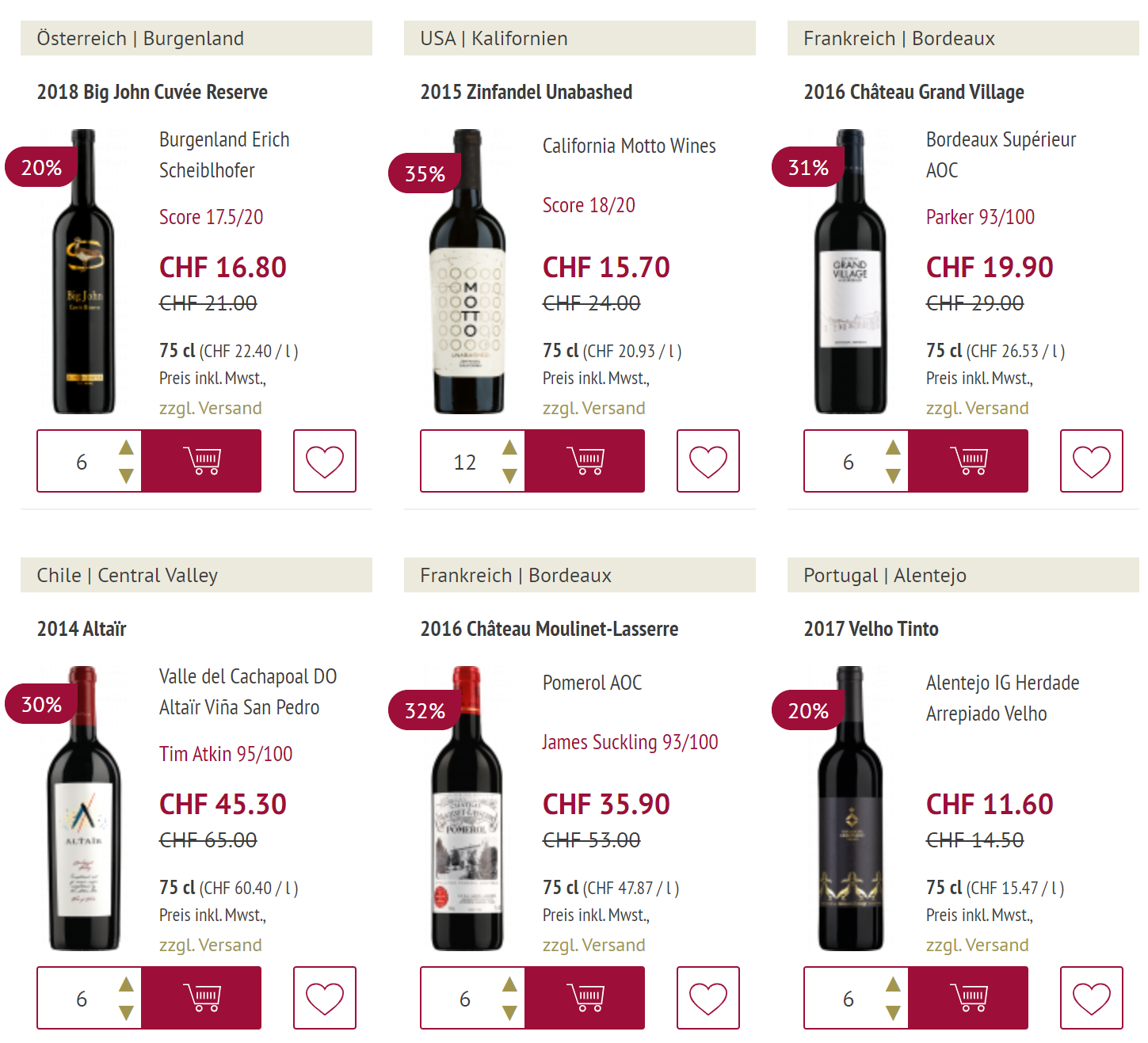 Habe bestellt und leider erst hinterher gesehen, dass es für die Newsletter Anmeldung noch einen 20 CHF Gutschein gegeben hätte (ab 80 CHF Bestellwert einlösbar). Also am besten vorher anmelden und erst dann bestellen: https://www.moevenpick-wein.com/de/optivo/newsletter/index/