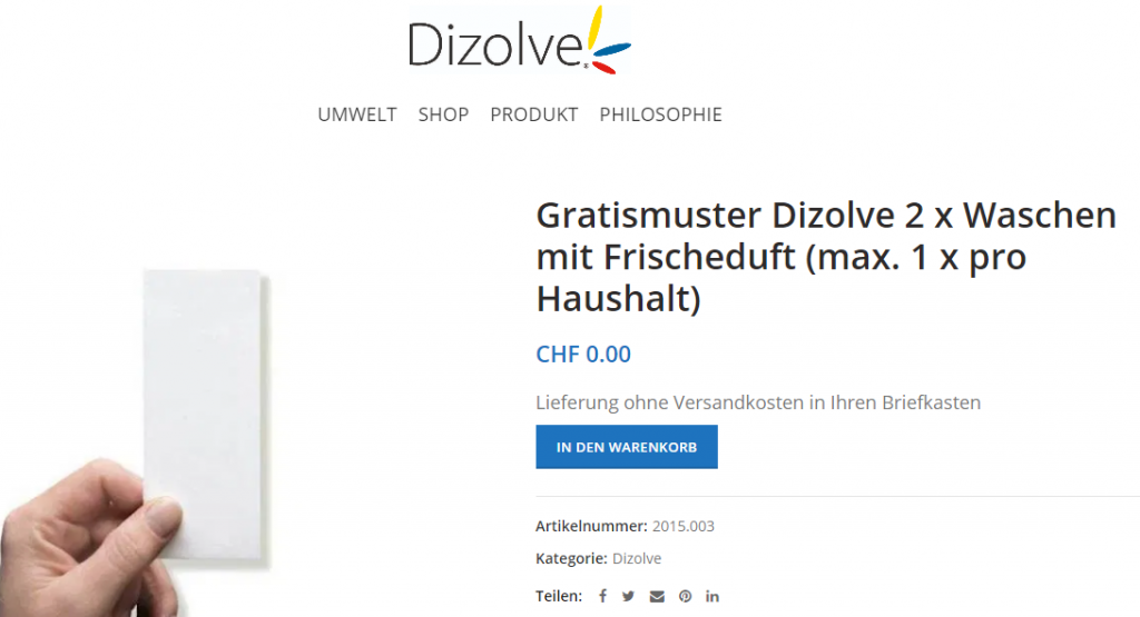 Bei Dizolve gibt es momentan 2 x Gratismuster. Die Waschstreifen werden in die Trommel gelegt und sorgen dann für einen Frischeduft.