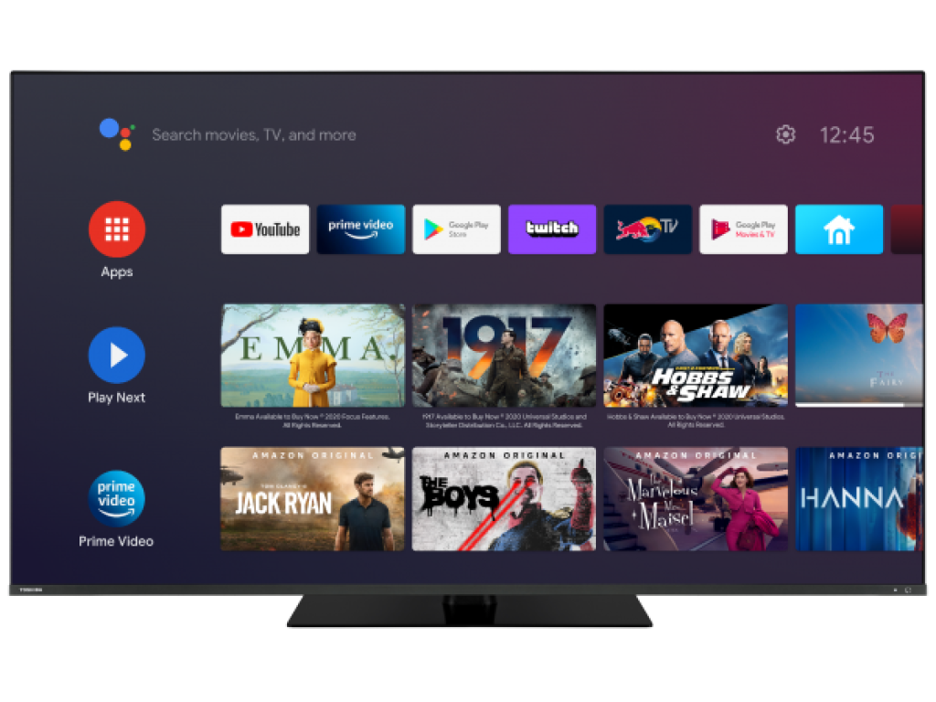 - Smart TV, Android, HbbTV, Netflix, Amazon Prime, Dolby Vision