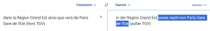 Sie können nicht nach Paris fahren, da die Fahrkarte nur in der Region (Grand Est) gültig ist. Sie können mit dem Zug nach Paris fahren, aber Sie können nicht dorthin gelangen.