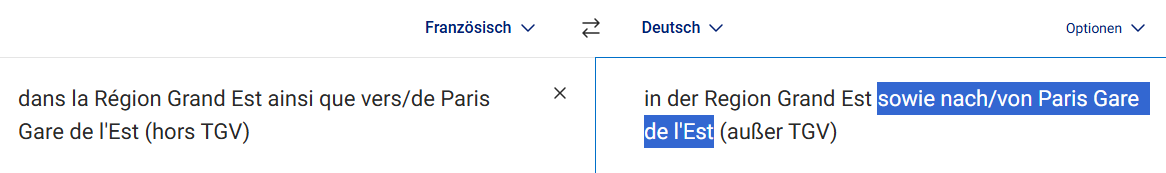 Es wird aber direkt in den Bedingungen erwähnt, dass es auch von und nach Paris Gare de l'Est gilt, ausser für TGV-Züge.