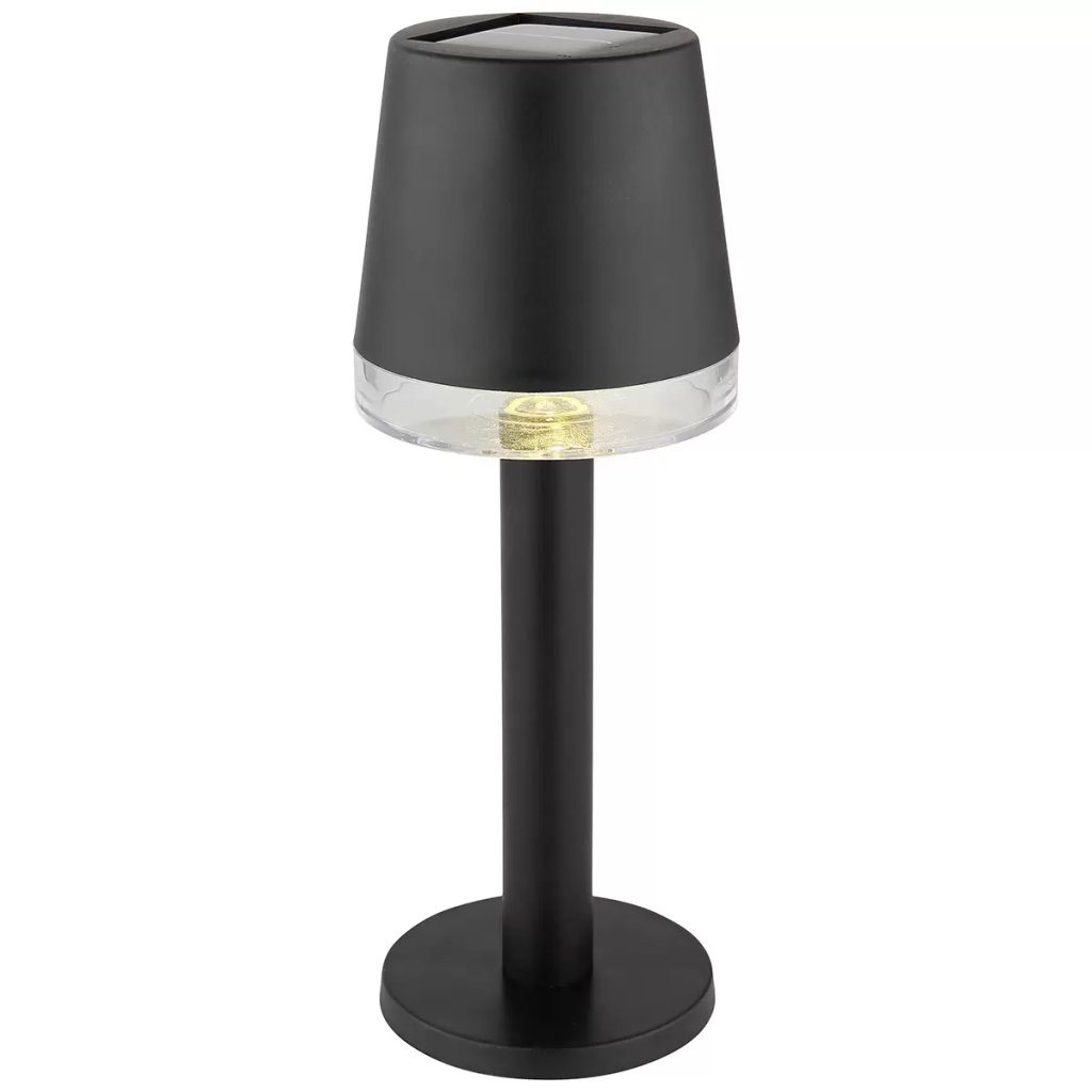 Die Solar-Tischleuchte ONDEGA SAMANTA sorgt für stimmungsvolles Licht im Garten, auf der Terrasse oder dem Balkon. Der schwarze Kunststoffkörper enthält ein fest verbautes LED-SMD-Leuchtmittel mit 0,5 Watt, das ein warmweisses Licht (3000K) mit 5 Lumen erzeugt. Tagsüber tankt die Lampe Sonnenenergie und leuchtet nachts bis zu 6 Stunden lang.