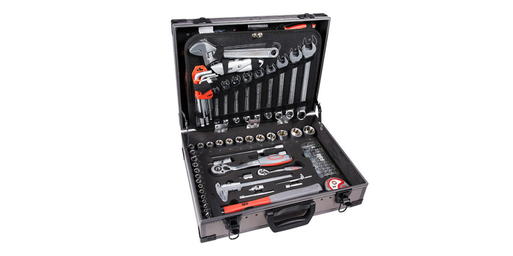 Dieser schliesst zahlreiche Schraubenzieher, Schraubenschlüssel, Zangen, Hammer, eine Wasserwaage und vieles mehr ein. Damit bist du für alle Aufgaben als Heimwerker bestens ausgerüstet, und als Handwerker verfügst du über eine gute Grundlage der wichtigsten Werkzeuge.