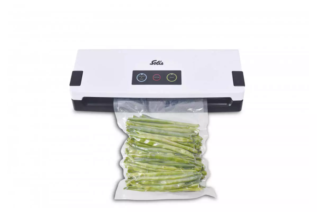 Das Solis Vac Quick Typ 576 Vakuumiergerät bietet eine einfache und effiziente Möglichkeit, Lebensmittel länger frisch zu halten. Mit seiner benutzerfreundlichen Bedienung und kompakten Bauweise ist es ideal für den täglichen Gebrauch in der Küche. Dieses Gerät sorgt dafür, dass Aromen und Nährstoffe erhalten bleiben, indem es Luft aus den Beuteln entfernt und so die Haltbarkeit deutlich verlängert. Es ist perfekt geeignet für die Lagerung von Fleisch, Gemüse, Käse und anderen Lebensmitteln. Zudem erleichtert es die Vorbereitung von Mahlzeiten und spart Platz im Kühlschrank oder Gefrierschrank