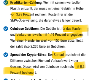 Wer Coinbase nutzen will, kann schon Gebühren sparen. Aber nicht so plump und falsch wie beschrieben.