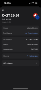 Die Differenzen im Bild ergeben sich hauptsächlich weil Coinbase CHF Kurs etwas anders interpretiert als Revolut aber das ist egal wie man sieht bleiben 2130 Euro 2130 EURC wobei keine Gebühren anfallen für Karten Zahlung oder irgendein spread beim direkten kauf von EURC in diesem Szenario.
