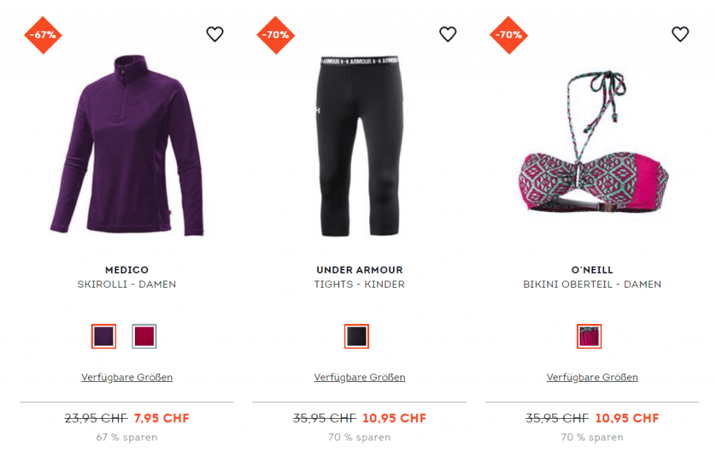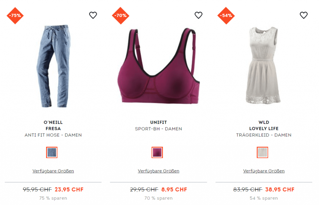 Besonders interessant ist die Kategorie Restgrössen. In dieser einfach die eigene Kleidergrösse einstellen, und schon werden einem stark reduzierte Artikel der eigenen Grösse angezeigt.