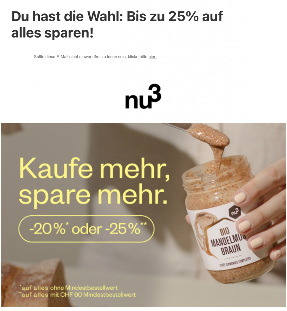 25%** auf alles ab einem Bestellwert von CHF 60: SAVECHDE25