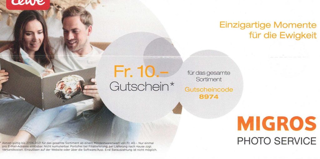 Beim Migros Photo Service gibt es aktuell einen CHF 10 Gutschein (gesamtes Sortiment).