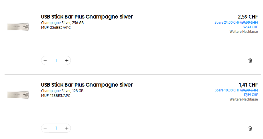 Hä, die 2TB SSD gibts doch bei Fust momentan für 99.- CHF, warum also 129.- bei Samsung bezahlen? Oder hab ich was übersehen?