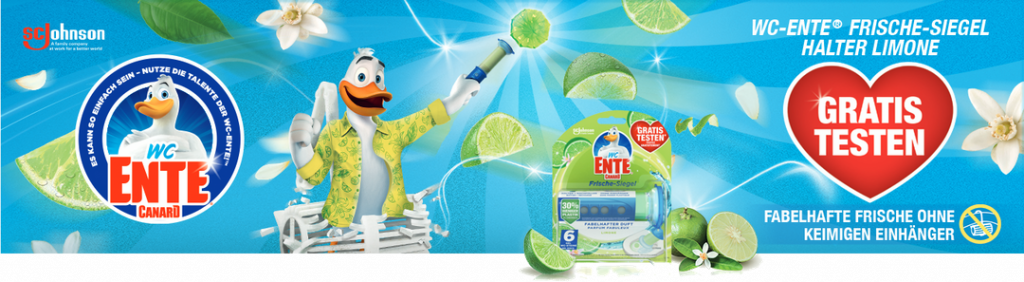 Bis 30.6. könnt ihr, einmal pro Haushalt, einen WC-Ente Frische-Siegel Halter Limone gratis testen.