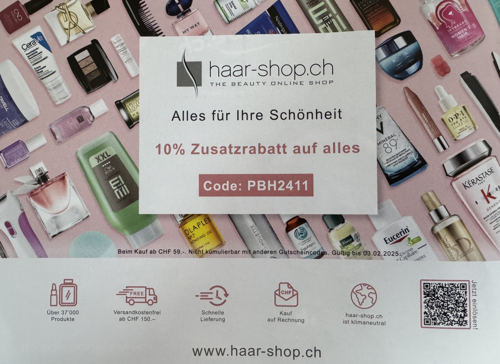 10% Zusatzrabatt auf alles bei haar-shop.ch ab CHF 59.– - gültig bis 03. Februar 2025.