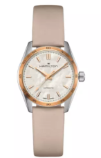 Die elegante Hamilton «Jazzmaster Performer» Damenuhr, besticht durch ihr sportlich-elegantes Design und gibt einen Vorgeschmack auf die gesamte Kollektion. Das hochwertige Lederarmband verleiht der Uhr eine edle Note. Der Dorn-Verschluss sorgt dafür, dass die Swiss Made Uhr sicher und bequem am Handgelenk sitzt. Das runde Gehäuse mit einem Durchmesser von 34 mm und das Perlmutt-Zifferblatt verleihen der Uhr eine zeitlose Eleganz. Die gut lesbaren Indizes ermöglichen ein einfaches und schnelles Ablesen der Zeit. Das schützende Saphirglas bewahrt das Zifferblatt zuverlässig vor Kratzern und Beschädigungen. Diese Uhr ist die perfekte Wahl für stilbewusste Frauen, die Wert auf höchste Qualität und Zuverlässigkeit legen. Das präzise Automatikwerk und das ansprechende Design machen diese Uhr zum idealen Accessoire für jeden Anlass: Sei es im Büro, bei besonderen Anlässen oder in der Freizeit.