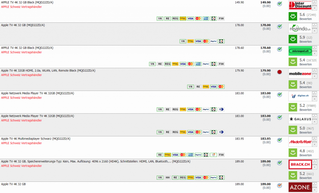 Zweitbester Preis in der Schweiz liegt bei CHF 178.- Bestpreis bisher: CHF 159.90 mit dem Fust-Gutscheintrickli.