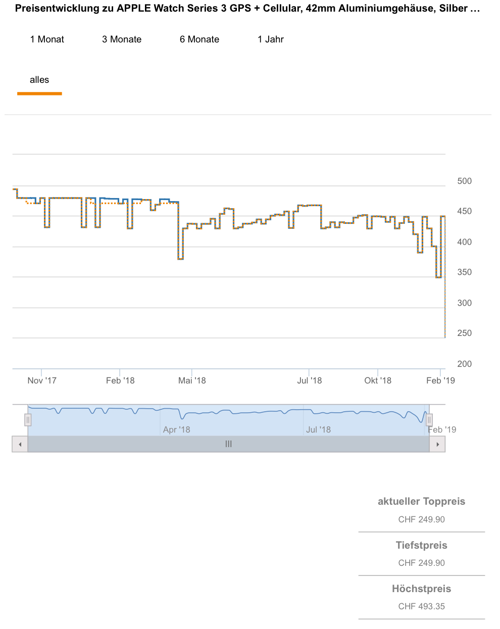 Bestprice waren bislang 299.- CHF bei MediaMarkt, der zweitbeste Preis aktuell sind 334.- CHF.