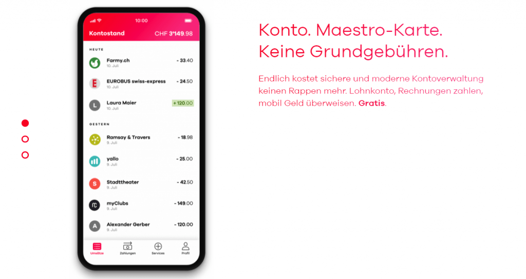 Bei neon kann man ähnlich wie bei der Bank CLER ein gratis Konto eröffnen und erhält ein Startguthaben von 50 Franken. Das Konto ist in wenigen Minuten eröffnet und es gibt keine Grundgebühren. Im Unterschied zum CLER Deal ist aber bei neon keine Kreditkarte inbegriffen.