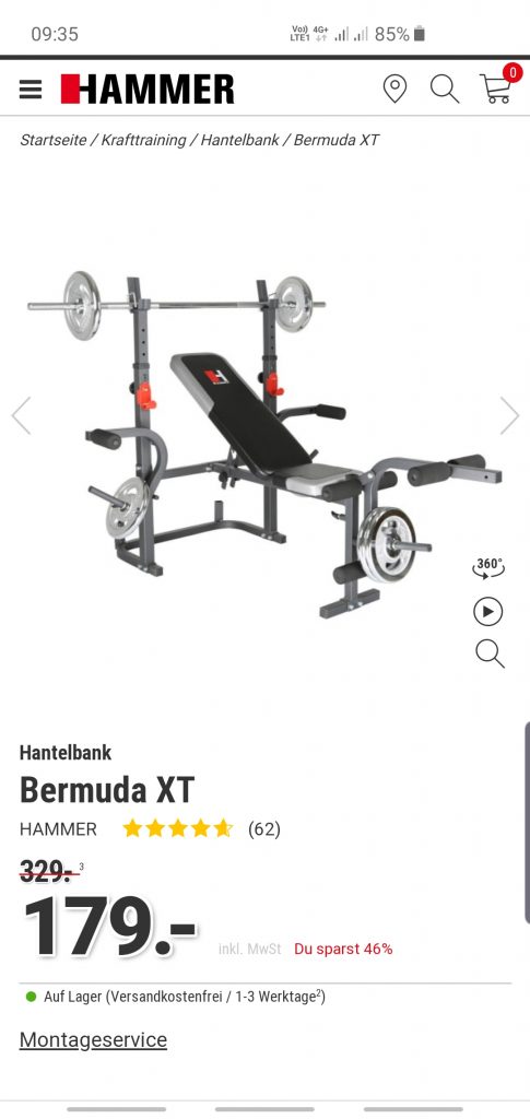Zurzeit bietet Hammer (fast) zum Halbenpreis die Bermuda XT Hantelbank an.
