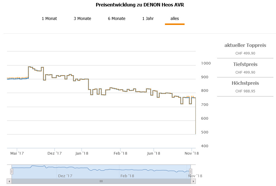 Gemäss toppreise war der bestprice bislang bei 719.90 CHF, der zweitbeste Preis aktuell liegt bei 764.15 CHF.